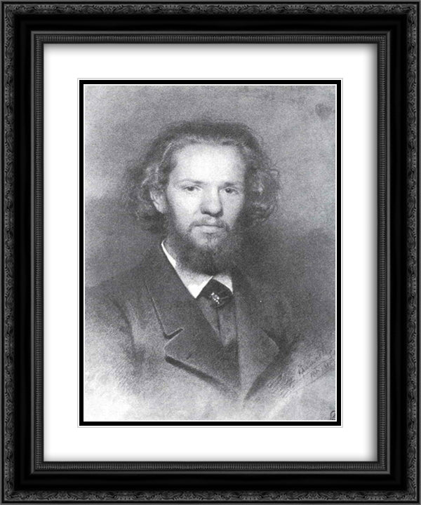 Portrait of the Artist Johann Gottlieb Wenig 20x24 Black Ornate Wood Framed Art Print Poster with Double Matting by Kramskoy, Ivan