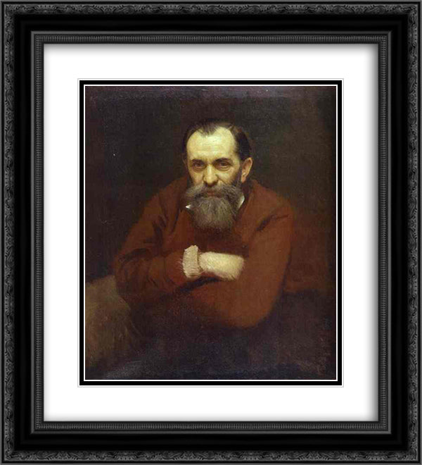 Portrait of the Artist Vasily Perov 20x22 Black Ornate Wood Framed Art Print Poster with Double Matting by Kramskoy, Ivan