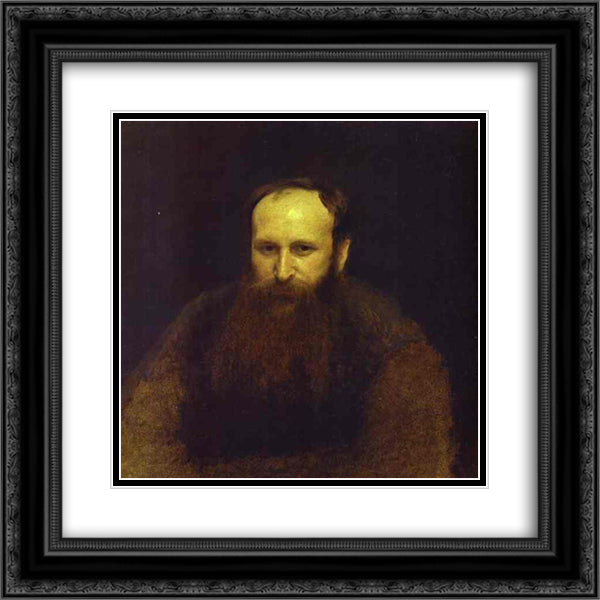 Portrait of the Artist Vasily Vereshchagin 20x20 Black Ornate Wood Framed Art Print Poster with Double Matting by Kramskoy, Ivan