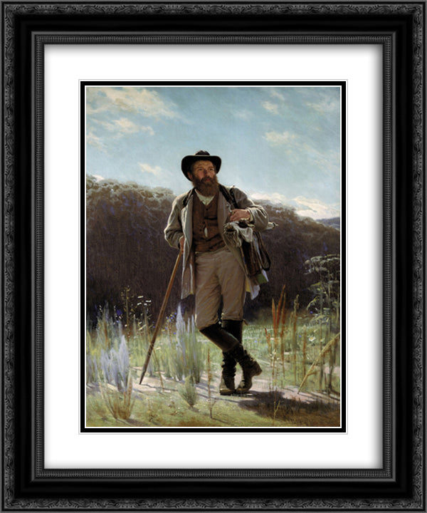 Portrait of the painter Ivan Shishkin 20x24 Black Ornate Wood Framed Art Print Poster with Double Matting by Kramskoy, Ivan
