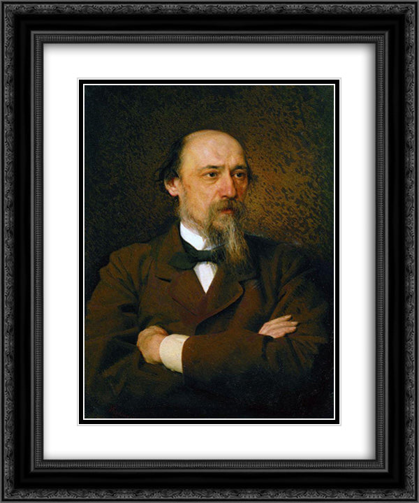 Portrait of the poet Nikolai Nekrasov 20x24 Black Ornate Wood Framed Art Print Poster with Double Matting by Kramskoy, Ivan