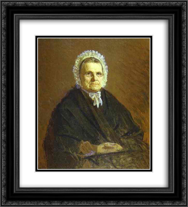 Portrait of Theodora Saltykova, the Painter`s Mother in Law 20x22 Black Ornate Wood Framed Art Print Poster with Double Matting by Kramskoy, Ivan