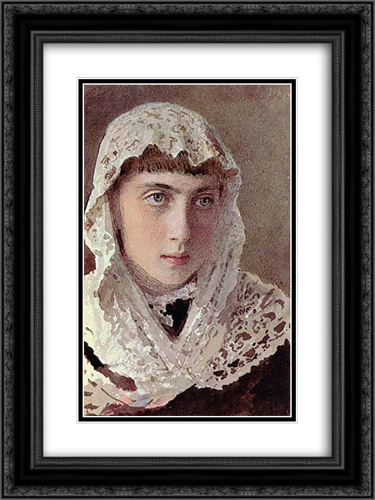 Portrait S.I. Kramskoy 18x24 Black Ornate Wood Framed Art Print Poster with Double Matting by Kramskoy, Ivan