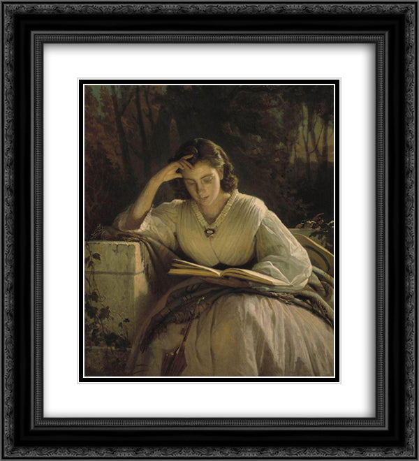 Reading 20x22 Black Ornate Wood Framed Art Print Poster with Double Matting by Kramskoy, Ivan
