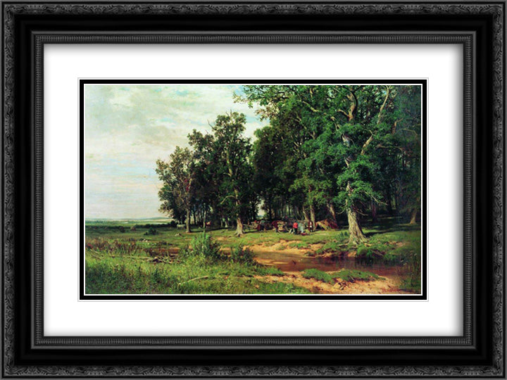 Mowing in the oak grove 24x18 Black Ornate Wood Framed Art Print Poster with Double Matting by Shishkin, Ivan