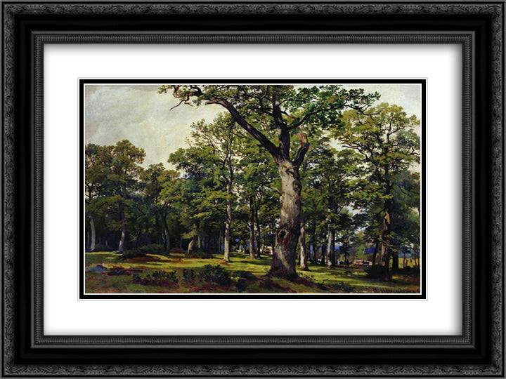 Oak forest 24x18 Black Ornate Wood Framed Art Print Poster with Double Matting by Shishkin, Ivan