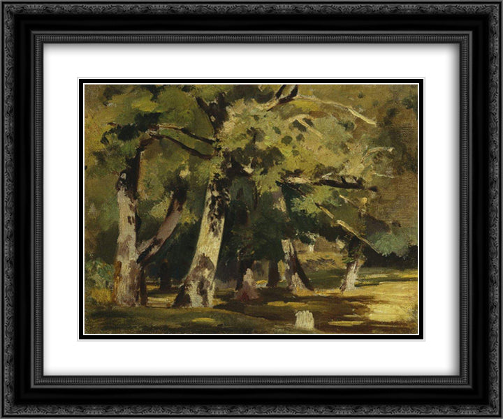 Oaks in sunlight 24x20 Black Ornate Wood Framed Art Print Poster with Double Matting by Shishkin, Ivan