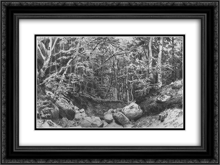 On the mountain Castel near Alushta 24x18 Black Ornate Wood Framed Art Print Poster with Double Matting by Shishkin, Ivan