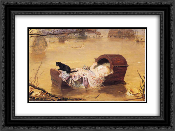 A flood 24x18 Black Ornate Wood Framed Art Print Poster with Double Matting by Millais, John Everett