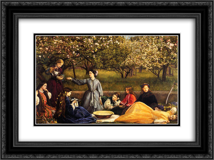 Apple Blossoms 24x18 Black Ornate Wood Framed Art Print Poster with Double Matting by Millais, John Everett