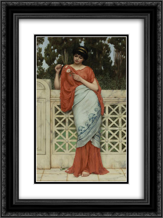 He Loves Me, He Loves Me Not 18x24 Black Ornate Wood Framed Art Print Poster with Double Matting by Godward, John William