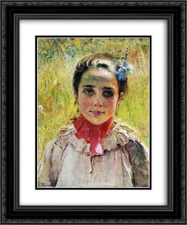 Girl in the Field 20x24 Black Ornate Wood Framed Art Print Poster with Double Matting by Makovsky, Konstantin