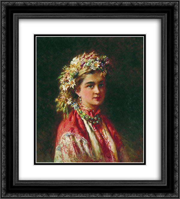 Girl wering a Crown 20x22 Black Ornate Wood Framed Art Print Poster with Double Matting by Makovsky, Konstantin
