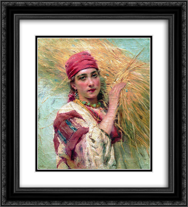 Girl with a sheaf 20x22 Black Ornate Wood Framed Art Print Poster with Double Matting by Makovsky, Konstantin