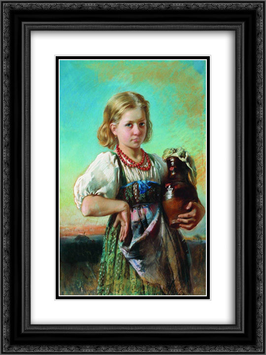 Girl with Jug 18x24 Black Ornate Wood Framed Art Print Poster with Double Matting by Makovsky, Konstantin