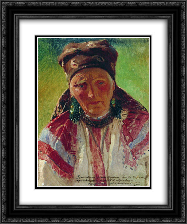 Head of the Old Woman 20x24 Black Ornate Wood Framed Art Print Poster with Double Matting by Makovsky, Konstantin