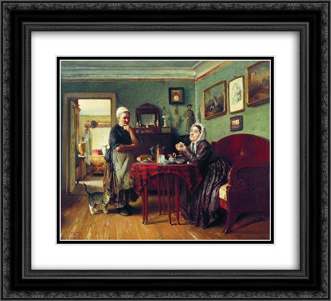 Household Conversation 22x20 Black Ornate Wood Framed Art Print Poster with Double Matting by Makovsky, Konstantin