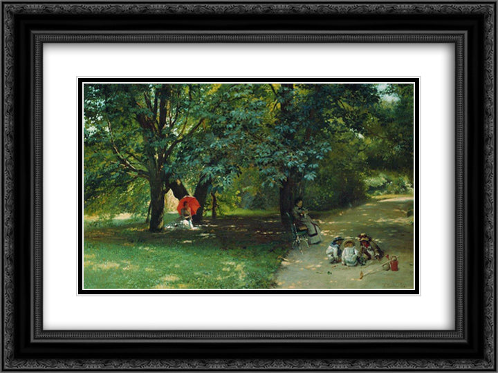 In the Park 24x18 Black Ornate Wood Framed Art Print Poster with Double Matting by Makovsky, Konstantin