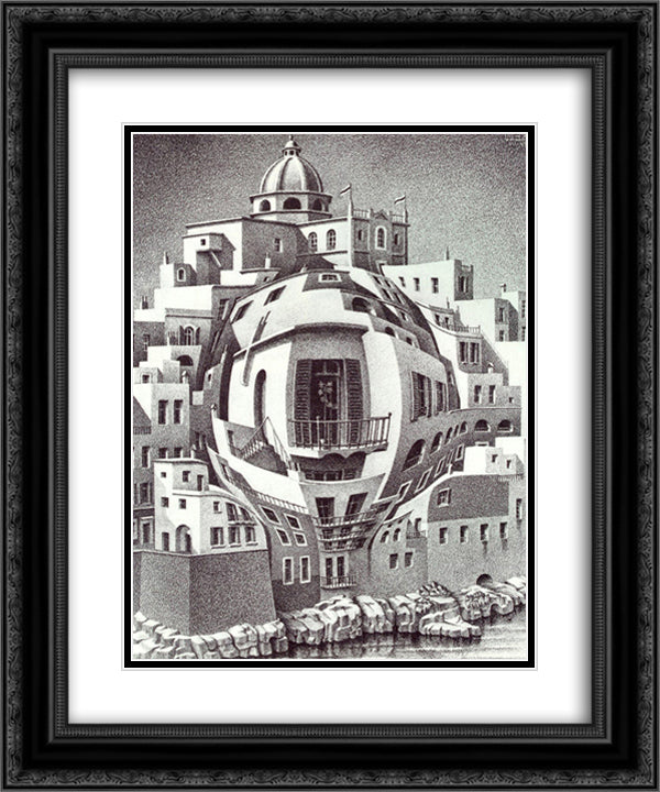 Balcony 20x24 Black Ornate Wood Framed Art Print Poster with Double Matting by Escher, M.C.