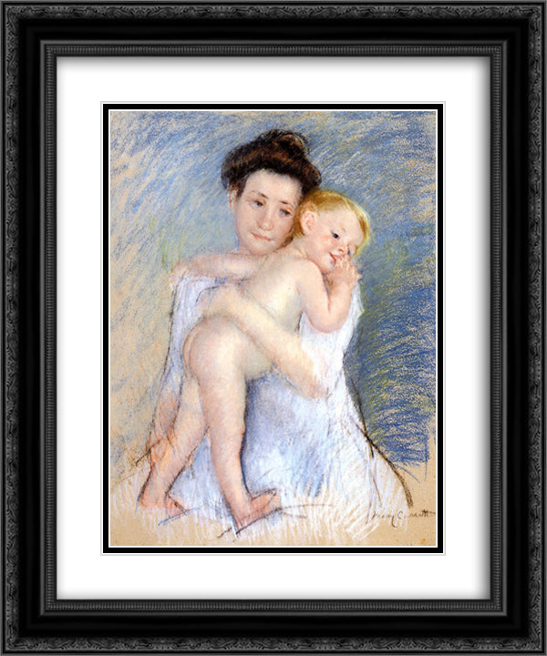 Maternal Tenderness 20x24 Black Ornate Wood Framed Art Print Poster with Double Matting by Cassatt, Mary