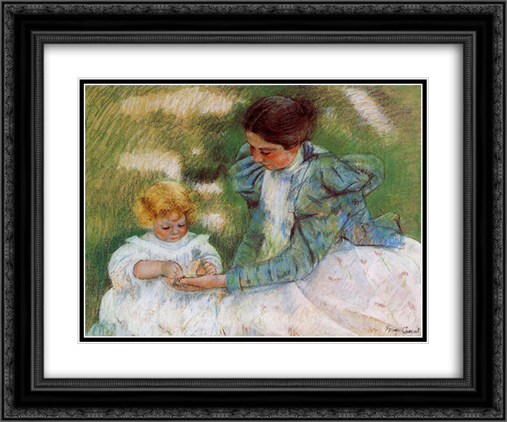 Mother Playing with Her Child 24x20 Black Ornate Wood Framed Art Print Poster with Double Matting by Cassatt, Mary