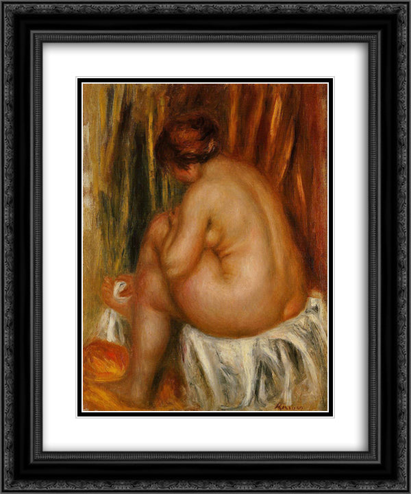After Bathing (nude study) 20x24 Black Ornate Wood Framed Art Print Poster with Double Matting by Renoir, Pierre Auguste