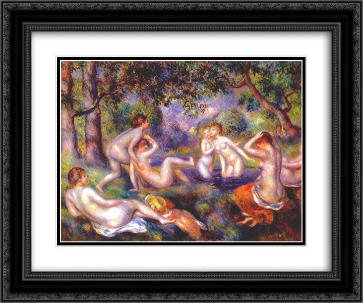 Bathers in the forest 24x20 Black Ornate Wood Framed Art Print Poster with Double Matting by Renoir, Pierre Auguste
