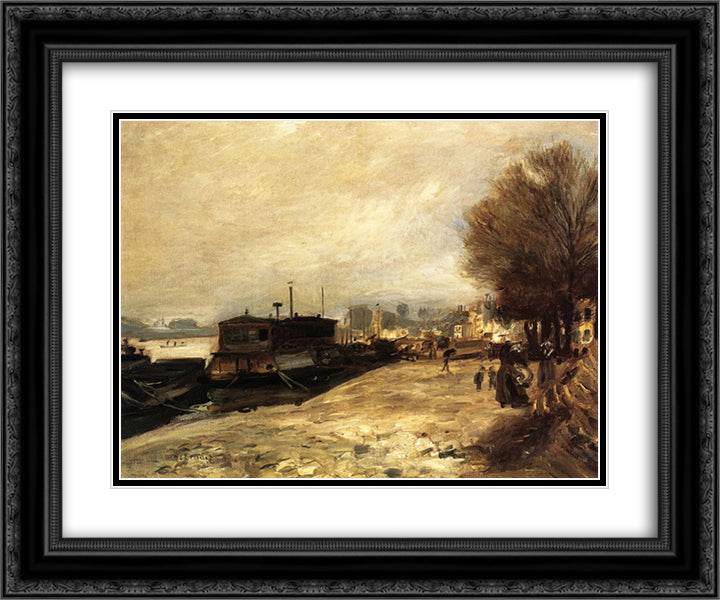 Laundry Boat by the Banks of the Seine, near Paris 24x20 Black Ornate Wood Framed Art Print Poster with Double Matting by Renoir, Pierre Auguste