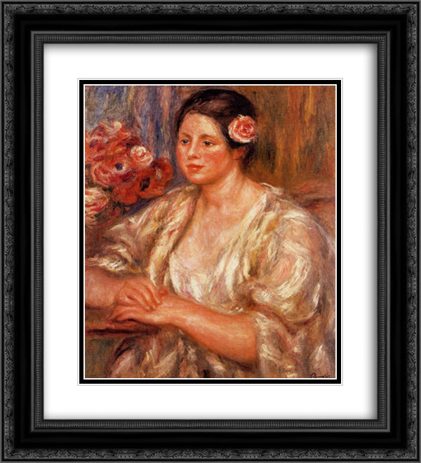 Madelaine in a White Blouse and a Bouquet of Flowers 20x22 Black Ornate Wood Framed Art Print Poster with Double Matting by Renoir, Pierre Auguste