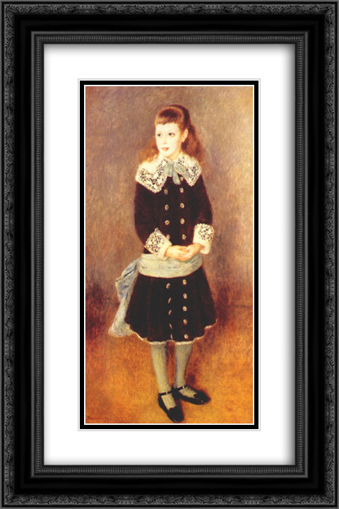 Marthe Berard (Girl Wearing a Blue Sash) 16x24 Black Ornate Wood Framed Art Print Poster with Double Matting by Renoir, Pierre Auguste