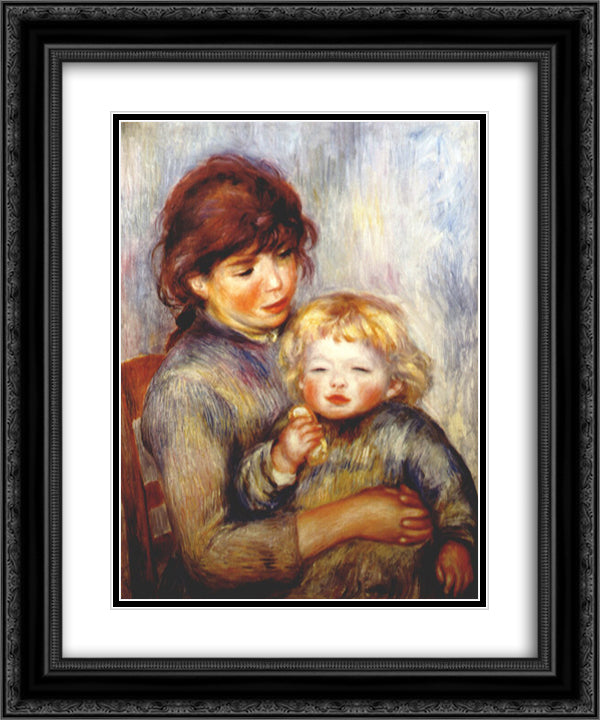 Maternity (child with a biscuit) 20x24 Black Ornate Wood Framed Art Print Poster with Double Matting by Renoir, Pierre Auguste