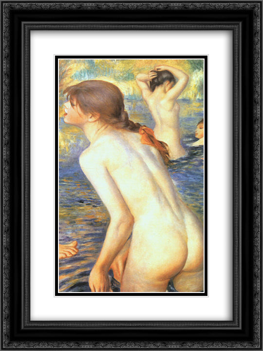 The Bathers 18x24 Black Ornate Wood Framed Art Print Poster with Double Matting by Renoir, Pierre Auguste