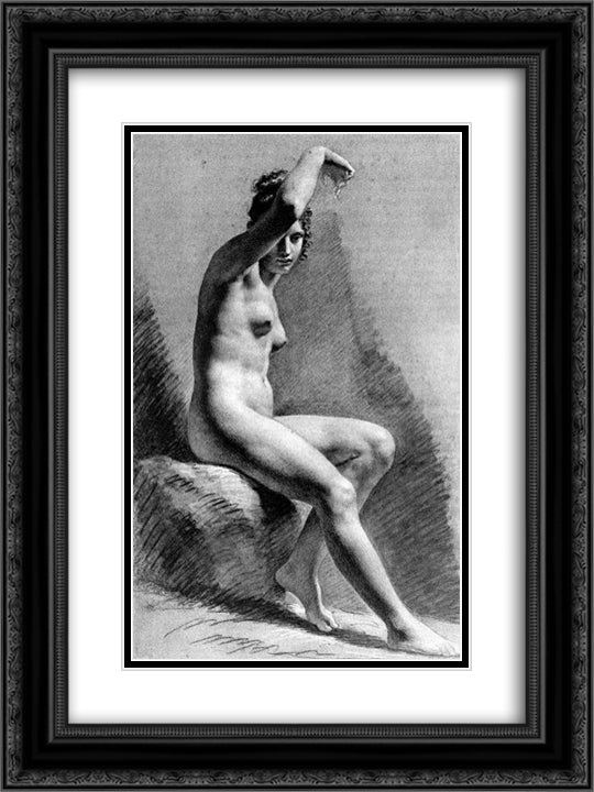 Female Nude Raising her Arm 18x24 Black Ornate Wood Framed Art Print Poster with Double Matting by Prud'hon, Pierre Paul