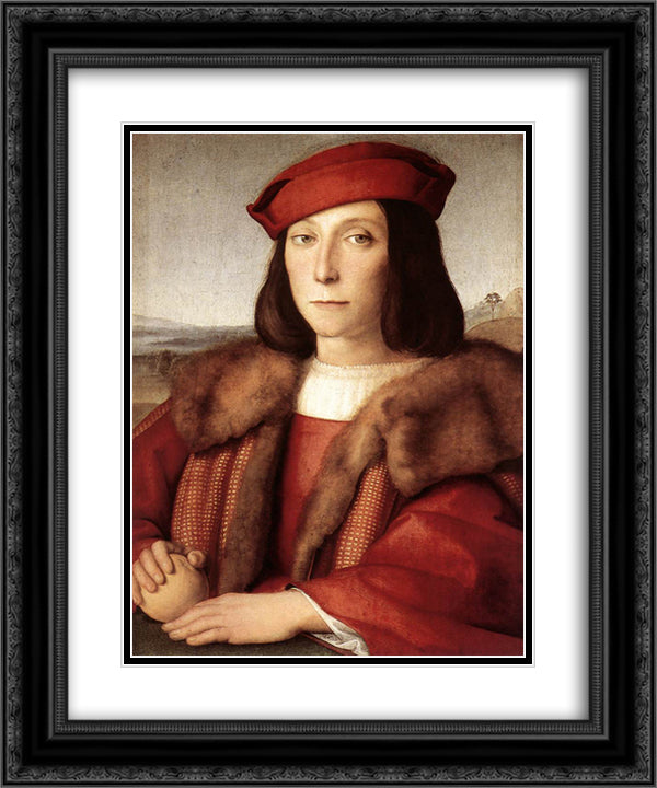 Portrait of a Man holding an Apple 20x24 Black Ornate Wood Framed Art Print Poster with Double Matting by Raphael