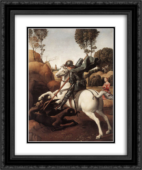 St. George and the Dragon 20x24 Black Ornate Wood Framed Art Print Poster with Double Matting by Raphael