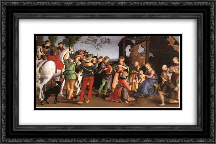 The Adoration of the Magi 24x16 Black Ornate Wood Framed Art Print Poster with Double Matting by Raphael