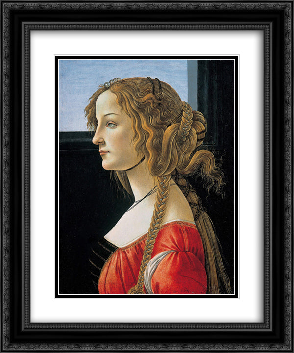 Portrait of Simonetta Vespucci 20x24 Black Ornate Wood Framed Art Print Poster with Double Matting by Botticelli, Sandro