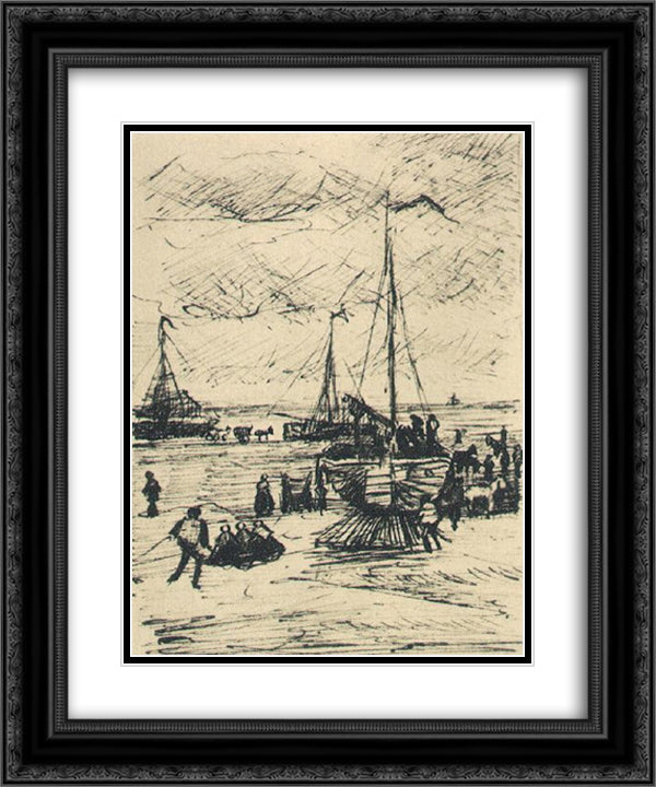 Beach and Boats 20x24 Black Ornate Wood Framed Art Print Poster with Double Matting by Van Gogh, Vincent