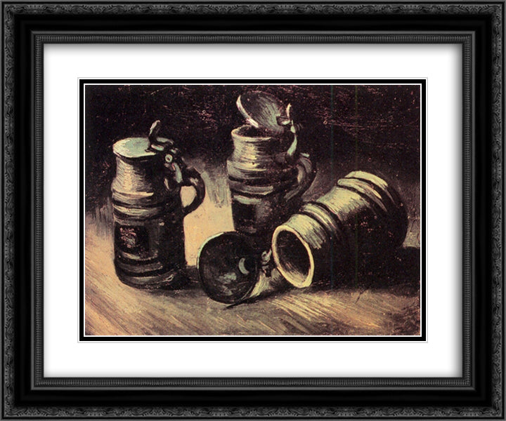 Beer Tankards 24x20 Black Ornate Wood Framed Art Print Poster with Double Matting by Van Gogh, Vincent