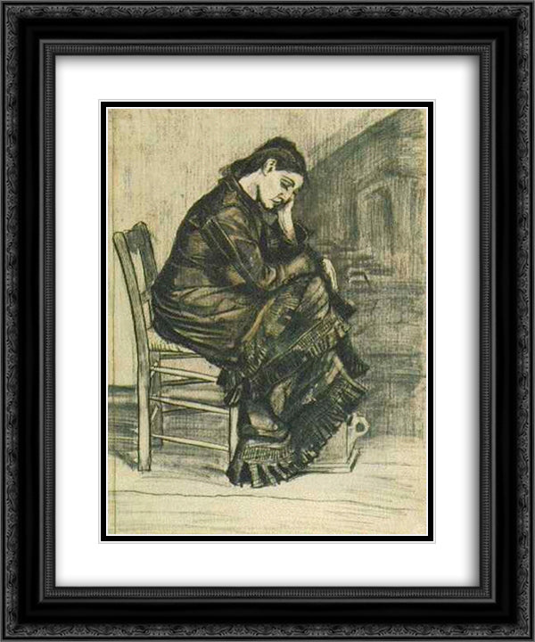 Bent Figure of a Woman Sien 20x24 Black Ornate Wood Framed Art Print Poster with Double Matting by Van Gogh, Vincent