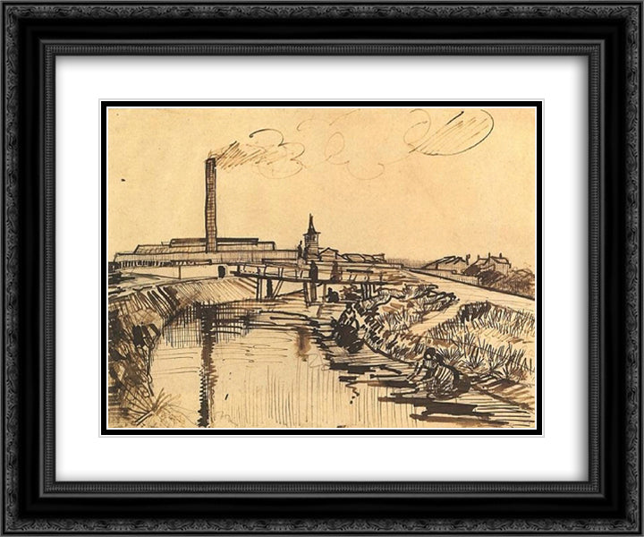 Canal with Bridge and Women Washing 24x20 Black Ornate Wood Framed Art Print Poster with Double Matting by Van Gogh, Vincent