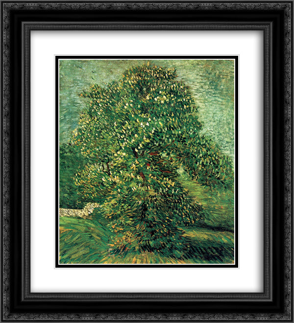 Chestnut Tree in Blossom 20x22 Black Ornate Wood Framed Art Print Poster with Double Matting by Van Gogh, Vincent