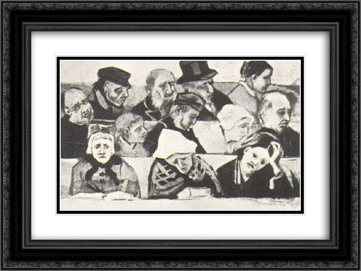 Church Pew with Worshippers 24x18 Black Ornate Wood Framed Art Print Poster with Double Matting by Van Gogh, Vincent