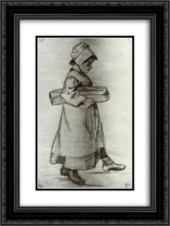 Girl Carrying a Loaf of Bread 18x24 Black Ornate Wood Framed Art Print Poster with Double Matting by Van Gogh, Vincent