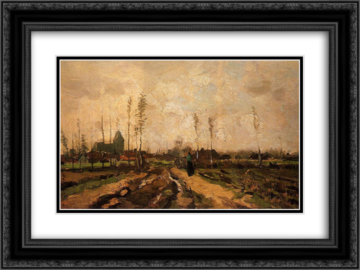 Landscape with a Church and Houses 24x18 Black Ornate Wood Framed Art Print Poster with Double Matting by Van Gogh, Vincent