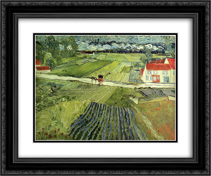 Landscape with Carriage and Train 24x20 Black Ornate Wood Framed Art Print Poster with Double Matting by Van Gogh, Vincent
