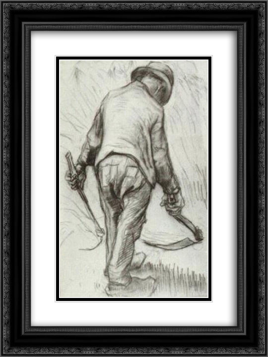 Peasant with Sickle, Seen from the Back 18x24 Black Ornate Wood Framed Art Print Poster with Double Matting by Van Gogh, Vincent