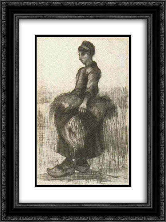 Peasant Woman, Carrying Wheat in Her Apron 18x24 Black Ornate Wood Framed Art Print Poster with Double Matting by Van Gogh, Vincent