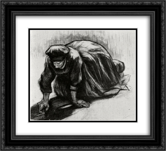Peasant Woman, Kneeling, Possibly Digging Up Carrots 22x20 Black Ornate Wood Framed Art Print Poster with Double Matting by Van Gogh, Vincent
