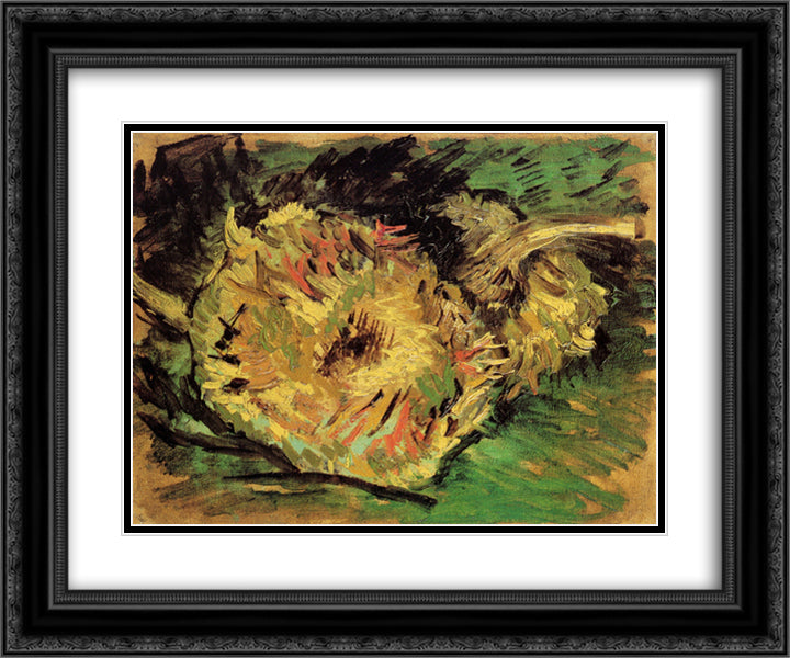 Two Cut Sunflowers 24x20 Black Ornate Wood Framed Art Print Poster with Double Matting by Van Gogh, Vincent